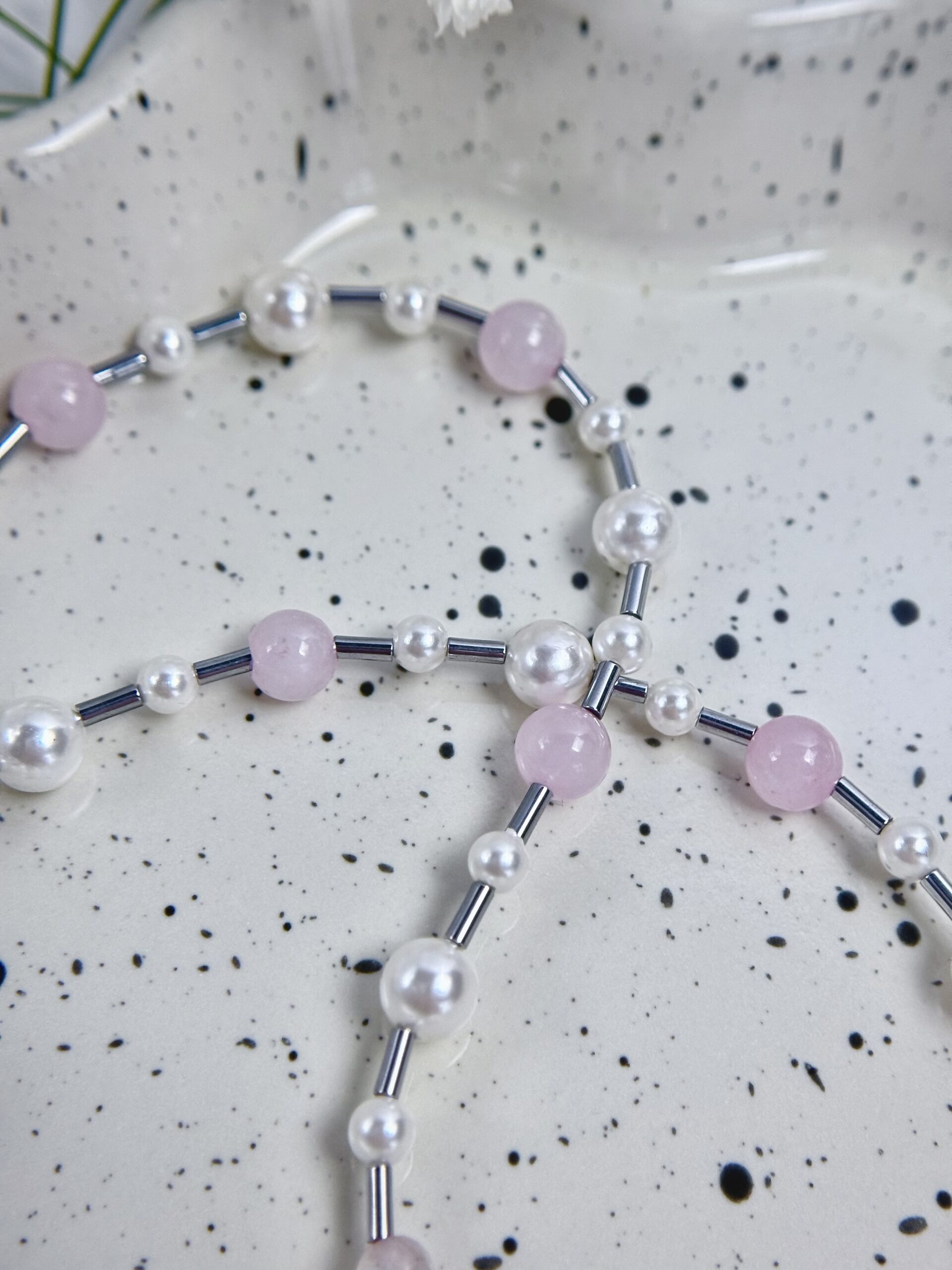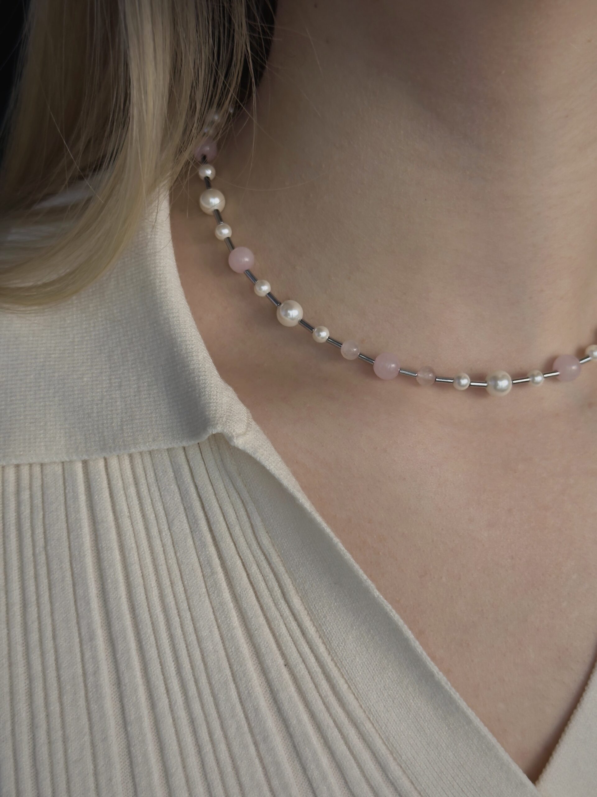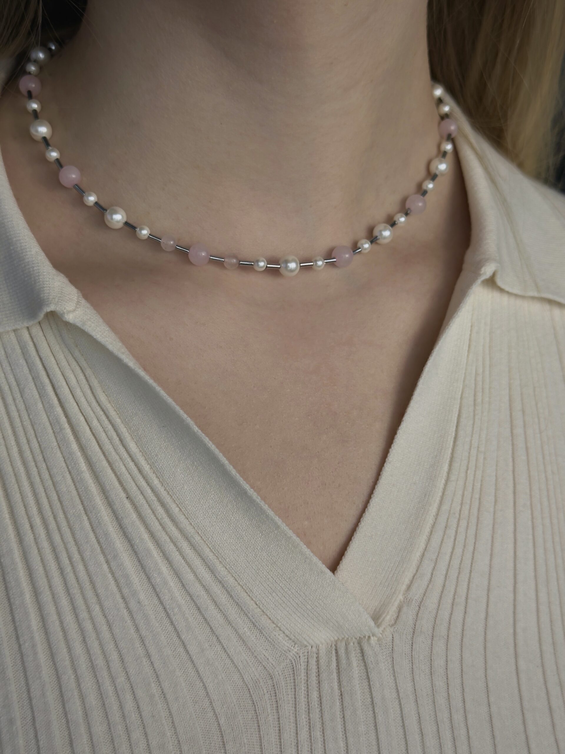 Vėrinys iš rožinio kvarco ir perlų masės
